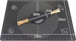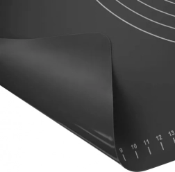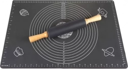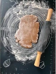 The RUHHY set combines a quality silicone mat with precise circular and linear scales and a rolling pin with a silicone surface and wooden handles. The mat adheres firmly to the countertop, does not slip, and thanks to its non-stick surface the dough does not stick—without unnecessary dusting with flour. The generous 70 × 50 cm size provides plenty of space for pizza, cookies, gingerbread, and yeasted doughs.