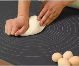 The silicone surface minimizes dough sticking, so there is no need to dust with flour. The rolling pin's wooden handles provide a secure and comfortable grip.