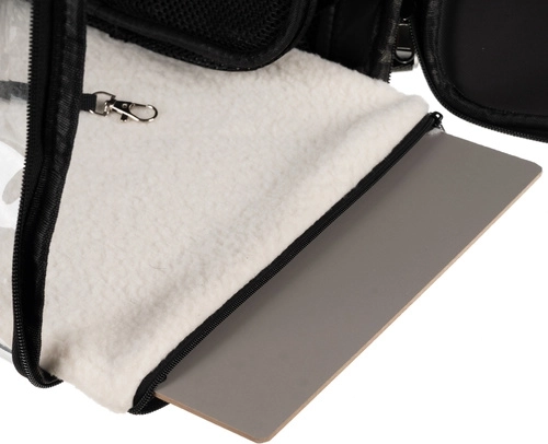 A removable soft insert with a reinforced bottom and an internal safety clip ensures comfort and protection for your pet during travel.