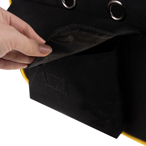 Thanks to the reinforced bottom with a removable insert, the interior is stable and easy to clean. Ergonomic, padded shoulder straps, an adjustable chest strap, and a wide waist belt distribute the weight for comfortable carrying even on longer trips. Practical side pockets hold a bottle, treats, and small accessories.