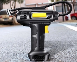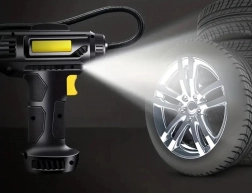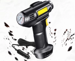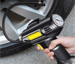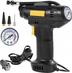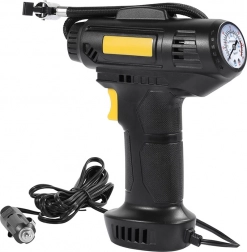 Introducing the 12V portable car compressor, perfect for every driver and outdoor activity enthusiast. Its compact and ergonomic design with black and yellow elements is not only user-friendly but also very portable. Its main advantage is being powered directly from the car using the cigarette lighter socket, making it a great travel companion.