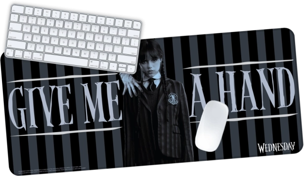Discover the gaming mousepad Wednesday - Give Me a Hand, which excels not only in its unique design but also in the high quality of materials. This pad is made of premium polyester with a microfiber surface, allowing for smooth and precise mouse movement. The non-slip rubber bottom ensures the pad remains stable in place even during intense use.
