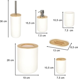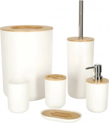 White Bathroom Accessory Set: Brush and Dispenser, 6 Pieces