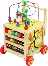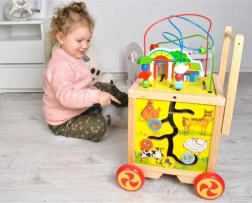 In addition to the walker, the product is equipped with an educational cube that offers diverse activities for skill development. Each side of the cube contains a different game – from a letter track to a colorful maze.