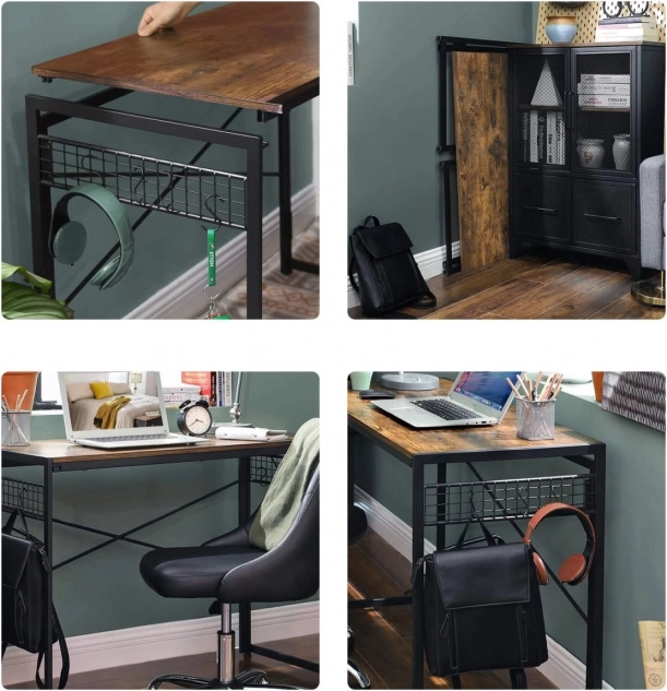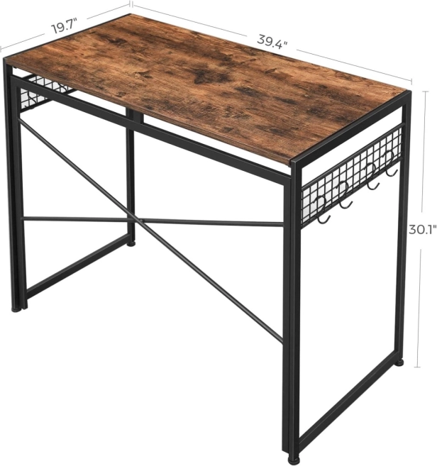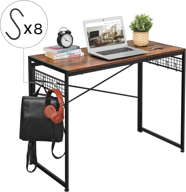 Enjoy rustic style with a stable construction that can hold a computer, monitor, sound system, or lamp. With 8 practical hooks, you have everything you need within reach.