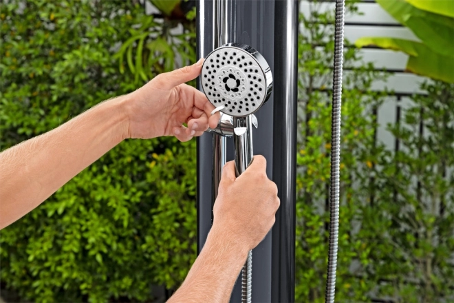 The practical adjustable shower head allows for fixed mounting or handheld use and offers multiple spray modes. The single-lever control ensures comfortable flow and temperature adjustment. The durable construction is designed for outdoor environments and easy maintenance.