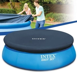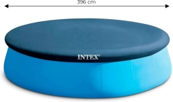 Practical INTEX cover for round above-ground pools with a diameter of 396 cm protects water from debris and reduces maintenance needs. Thanks to the opaque material, it effectively limits the growth of algae and organisms, features drain holes to remove excess water, and a secure fit with a 30 cm overhang. Durable material, cleaner water, energy savings thanks to better thermal insulation, and safer operation.