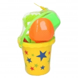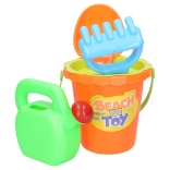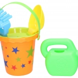 A practical children's sand set sized 15 cm that includes everything little builders need: a bucket, sieve, watering can, rake, and shovel. Available in 2 color variants – yellow and orange. Great for the playground, beach, and garden.