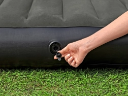 The two‑way lockable valve with quick release lets you inflate and deflate the mattress easily and quickly. Thanks to its 188 × 99 × 25 cm dimensions, it offers plenty of space for comfortable sleep, and its versatile design means you can use it indoors or outdoors.