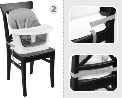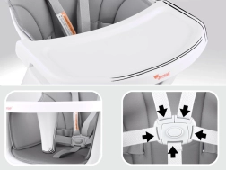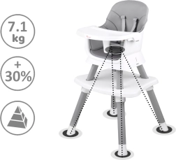 Safety is ensured by the 5-point harness and anti-slip guard. Non-slip tips on the legs keep the chair stable in place. Assembly and switching between modes is quick and intuitive, so you can focus on what matters—your child's comfort and joy.
