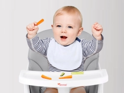 Ergonomic seat, breathable and easy-to-wipe cover, 5-point harness, and anti-slip guard. Non-slip feet ensure stability on any surface.