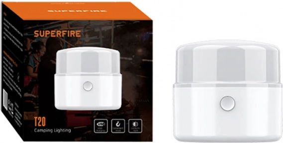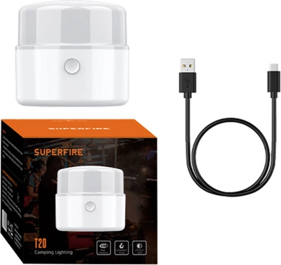 The compact SUPERFIRE T20 camping lamp offers a 180 lm light output, up to 10 hours of runtime, and 4 lighting modes including SOS and strobe. With micro USB charging, low weight, and a practical hook, it’s ideal for tents, garages, and home use.