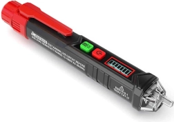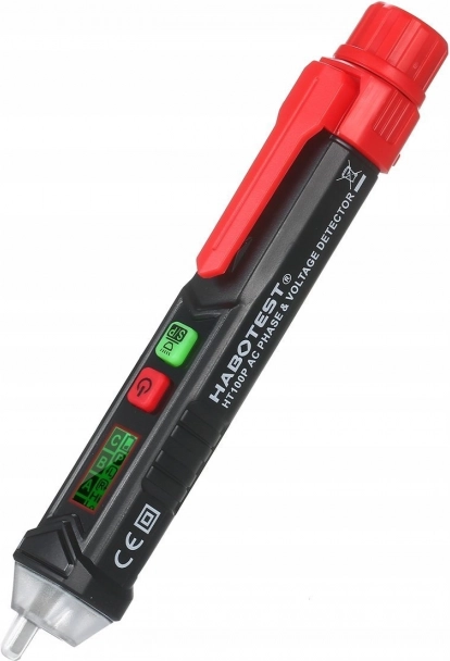 Reliable HABOTEST HT100P non-contact voltage tester for quick and safe wire inspection. Offers NCV detection 12–1000 V, adjustable sensitivity, visual and audible alarm, wire break detection, and phase and neutral identification. With an LCD display, LED flashlight, and auto power-off, it’s ideal for electricians and home use.