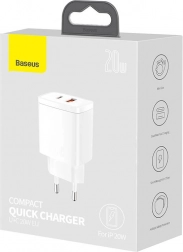 With this compact wall charger you can power your devices up to three times faster. It supports Power Delivery 3.0 and Quick Charge 3.0 with a total output of 20 W — for example, an iPhone 12 reaches about 50% in 30 minutes. The dual USB‑C and USB‑A ports let you conveniently charge two devices at the same time.