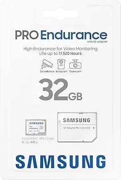 The Samsung Pro Endurance microSD card is designed for long-lasting and reliable performance. With a 32GB capacity, it can store thousands of hours of video, which is perfect for surveillance cameras, sports camcorders, or dashboard cameras in vehicles. With read speeds up to 100 MB/s and write speeds up to 40 MB/s, it handles large video files effortlessly.