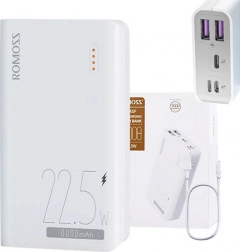 The compact ROMOSS Sense4SF power bank with a 10000 mAh capacity and up to 22.5 W output offers fast and safe charging for your devices. It can charge up to 3 devices simultaneously and is compatible with popular fast-charging protocols, including 20W PD for iPhone and 22.5 W for selected HUAWEI devices. It features an advanced safety system and practical ports USB-C/USB-A/Micro USB/Lightning.