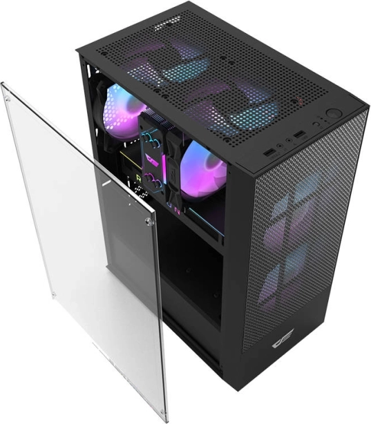 The Darkflash A290 is an elegant and functional PC case for gamers and creators. It combines a modern design with efficient airflow thanks to the front mesh panel and the option to install up to five 120 mm fans or a 240 mm AIO. The tempered glass side panel showcases your RGB components and gives the build a premium appearance.