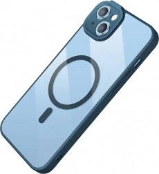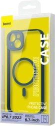 Transparent magnetic case and tempered glass Baseus for iPhone 14 Plus blue