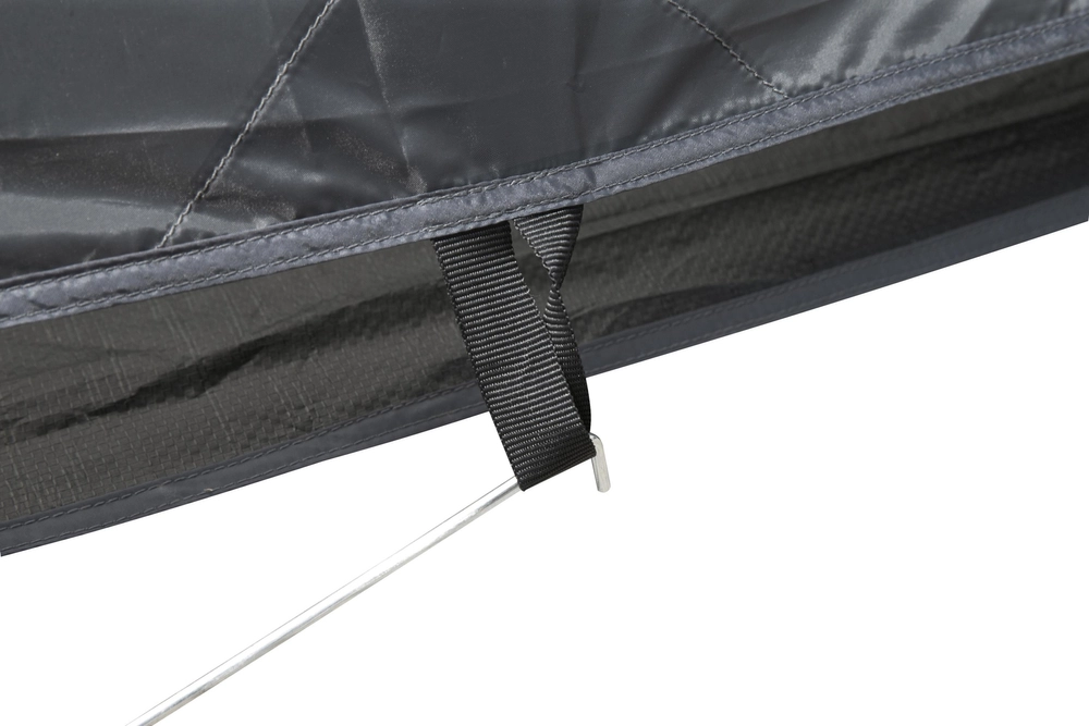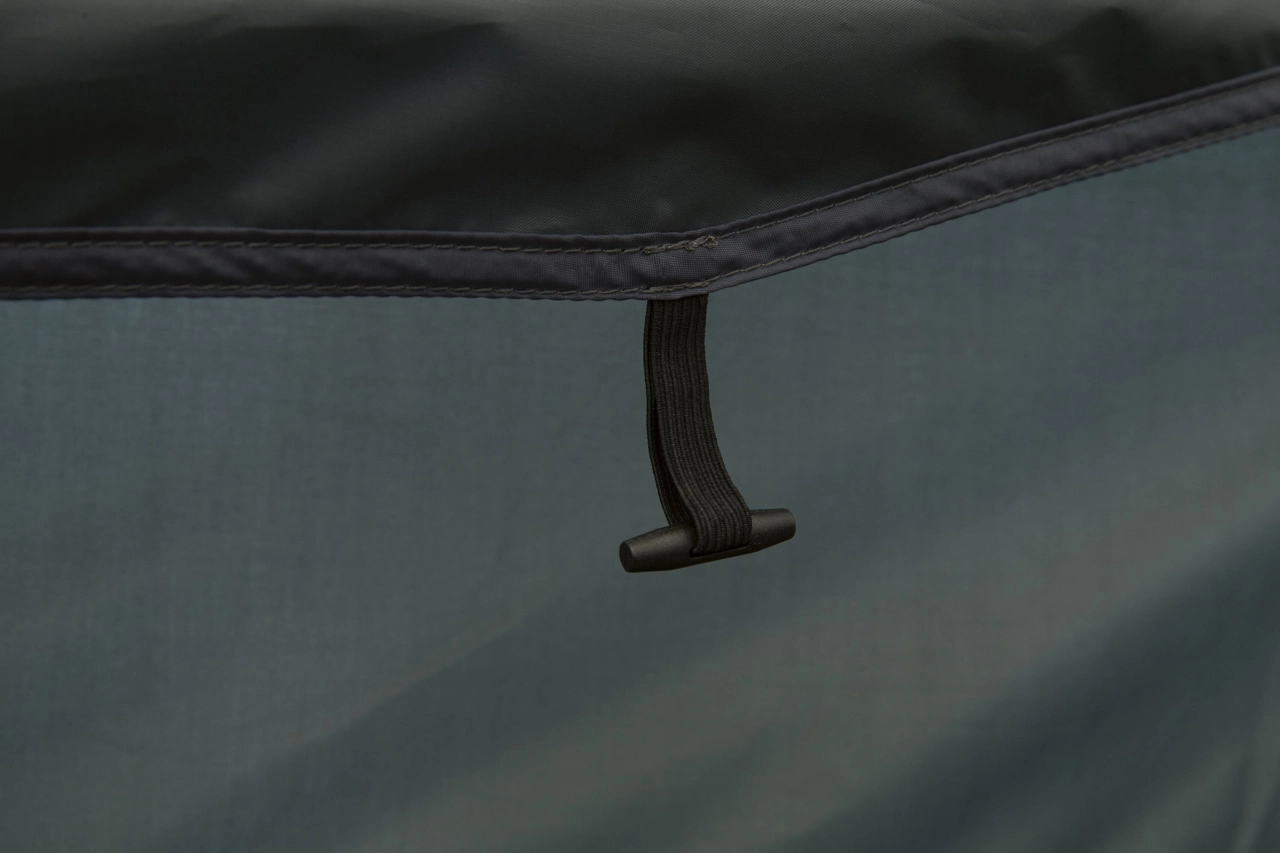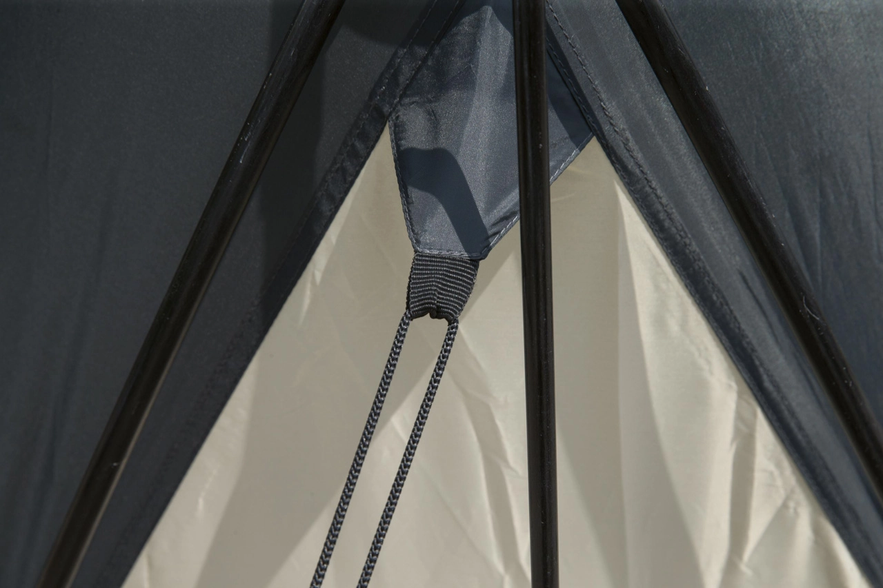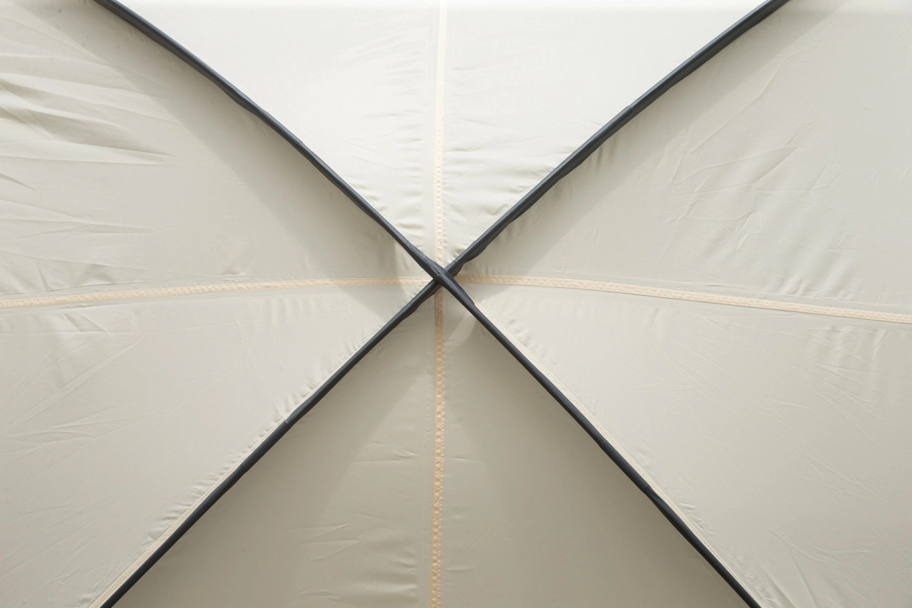 Thoughtful details enhance everyday use. Inside, you will find 4 spacious pockets for your phone, hot tub controller, towels, or accessories. The 390 × 390 cm footprint provides ample room not only for the hot tub but also for seating. Materials and seams are designed for easy maintenance and long service life, so the pavilion will reliably perform throughout the season.