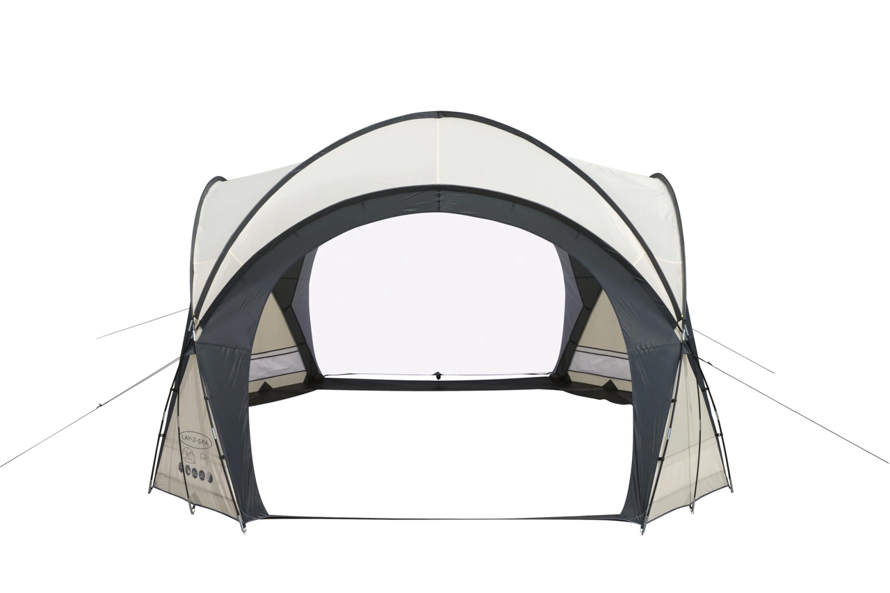 The Bestway pavilion for LAY-Z-SPA hot tubs transforms your outdoor area into a comfortable, protected space for relaxation. Thanks to its stable frame and quality fabric shell with mosquito netting, you can enjoy downtime without pesky insects, with ample shade and fresh air circulation. Four removable side panels let you tailor privacy and ventilation to current conditions.