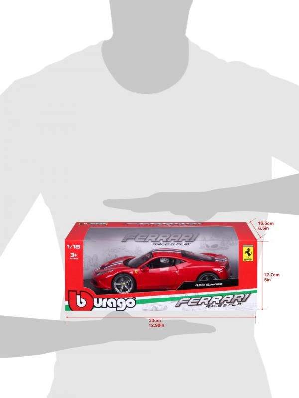 Expand your Bburago collection with more great 1:18 scale car models. Die-cast model from the Bburago 1:18 Ferrari 458 Speciale Ferrari Race&Play series, red. Recommended age: 3+