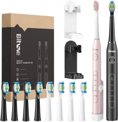 Discover a perfectly clean smile with the BITVAE D2 sonic toothbrush set in pink and black. It offers 40,000 vibrations per minute, 5 cleaning modes, a smart 2-minute timer with 30s intervals, and up to 30 days of battery life. Thanks to IPX7 water resistance, high-quality DuPont bristles, and a generous set of 8 replacement brush heads, you get comprehensive care for teeth and gums at home and on the go.