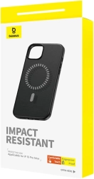 Baseus Fauxther is a sleek magnetic case designed specifically for iPhone 15 Pro Max. Integrated N52-grade magnets keep the phone and compatible magnetic accessories firmly in place and enable wireless charging without removing the case. The slim profile of about 2.5 mm preserves the phone's sleek lines and a comfortable grip.