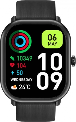 The minimalist design with a slim body (10.5 mm) and a comfortable silicone strap fits great on the wrist. Smart features include notifications, music and camera control, calendar, calculator, business card, Do Not Disturb, and Find Phone/Watch. With IP68 resistance, it’s ready for everyday use.