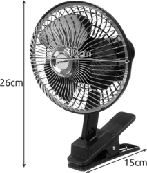 The fan is equipped with a strong clip that ensures easy attachment to various surfaces, making it ideal for use in vehicles.