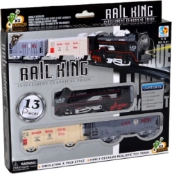 Enjoy the atmosphere of classic railways with this stylish battery-powered train set. The set includes a locomotive, two carriages, and tracks that form a loop with a diameter of 67 cm (track length 210 cm). The train features light and sound effects for an even more realistic experience.