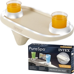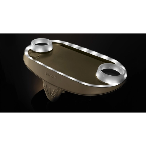 Enjoy even more relaxation in your hot tub with the practical INTEX shelf with LED backlighting. It offers universal compatibility with all INTEX SPAs, 2 secure drink holders, and a spot for a tablet or phone. The gentle LED lighting creates a pleasant atmosphere for evening soaks.