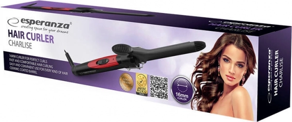 Create perfect curls in no time with the ESPERANZA Charlise curling iron. 16 mm ceramic barrel for even heat, fast heat-up and a max. temperature of 180 °C. For comfortable styling, it features a 170 cm swivel cord, a cool tip and a foldable stand. Thanks to its compact dimensions, it is ideal for home and travel.