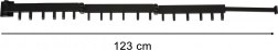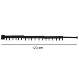 A compact wall-mounted clothes dryer, 123 cm long, offering space saving, 18 hooks, and 4 folding arms with telescopic extension. The durable aluminium construction in matte black is ideal for bathrooms, laundry rooms, and balconies, and holds up to 20 kg of laundry.