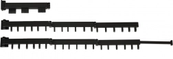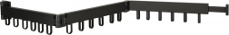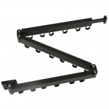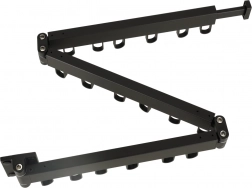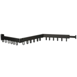 The corner rail with fixed hooks and a hinge allows practical storage along the wall and unfolds only when needed.