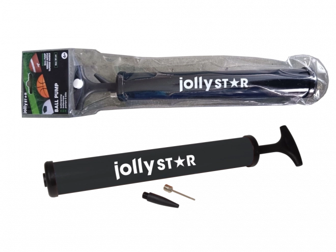 The practical JollyStar hand pump is ideal for quick and convenient inflation of various balls. With the included 13 cm hose, needle, and two adapters, it offers universal use, easy handling, and a lightweight plastic build. Available in two colors – blue and black.