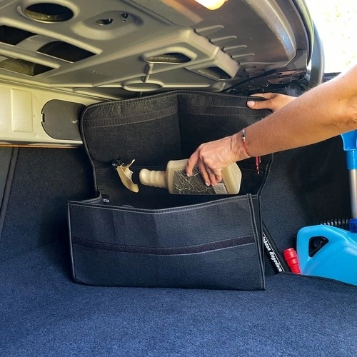 Practical felt organizer for the trunk helps keep order and protects the interior of your car's trunk. Thanks to its design, it is easily portable and usable in various situations.