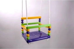 A safe and comfortable children's swing for toddlers with a front safety bar. Ideal for the garden and indoors, available in green, purple, and blue for joyful everyday swinging.