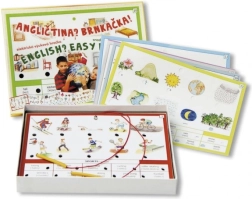 The game offers a fun way to learn English for children aged 6 and up. It includes 16 interchangeable sheets, each representing one themed area with ten words: