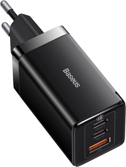 Baseus GaN5 Pro 65 W Wall Charger, 2× USB‑C + USB (Black)