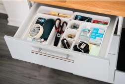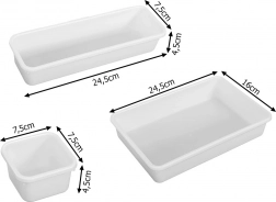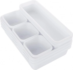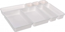 This practical drawer organizer brings thoughtful division of space to your kitchen. Thanks to containers in various sizes, you can arrange the inserts exactly to the width of your drawer and the items you store. Special hooks allow quick connection and a stable layout without shifting.