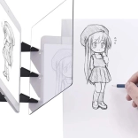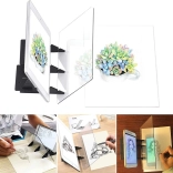 The optical drawing board uses a transparent acrylic panel that shows the image from your phone or tablet screen on paper as a faint outline. Simply place your device in the stand, choose a motif, and start tracing—no complicated apps and no light projection required. Thanks to its compact A5 dimensions, it’s perfect for home, school, and travel.