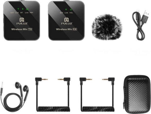 Enjoy clean sound while recording with the Puluz Wireless Microphone 1 TX + 1 RX. Ideal for live streaming, vlogging, and video creation with excellent audio quality and convenience.