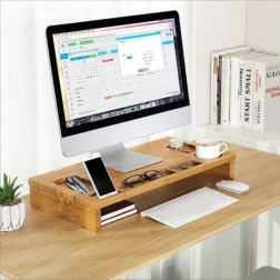 Upgrade your workspace with a stylish bamboo stand that combines ergonomics and organization. By raising the monitor to eye level, it reduces neck and back strain, while the thoughtful compartments keep essentials within reach—from your phone and writing tools to your mug.