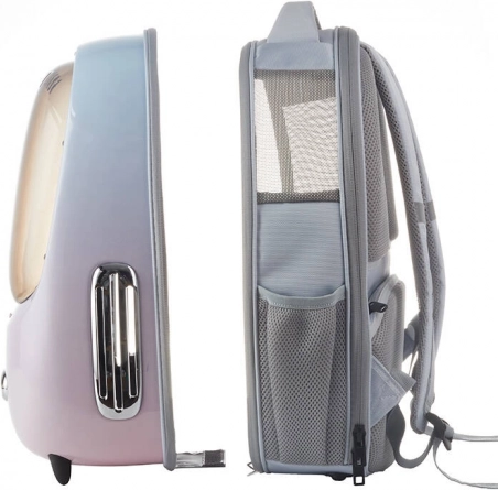 The backpack is equipped with a removable cushion for optimal comfort for animals weighing up to 8 kg. Practical side pockets allow for the storage of small items. The product weighs only 1.4 kg, making it a lightweight and easily portable accessory.
