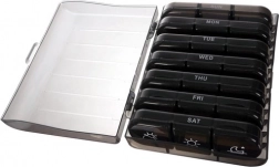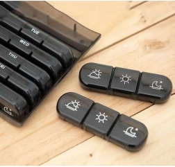Clear Daily Division System: Each of the seven compartments is divided into three separate sections for morning, noon, and evening doses. Each section closes securely with a click, ensuring safe storage of medications.