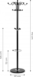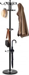 The elegant ModernHome free-standing coat rack is ideal for hallways, offices, and dressing rooms. It offers a stable metal frame, a heavy stone base to prevent tipping, a total of 16 hooks for coats, bags, and kids’ jackets, and a practical umbrella spiral. Its modern design complements any interior.