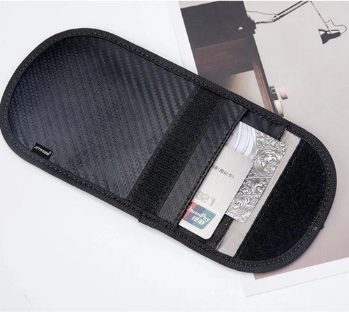 The pouch’s shielding chamber effectively blocks radio waves and prevents misuse of keyless car access. Simply place the key in the deeper pocket and close it.