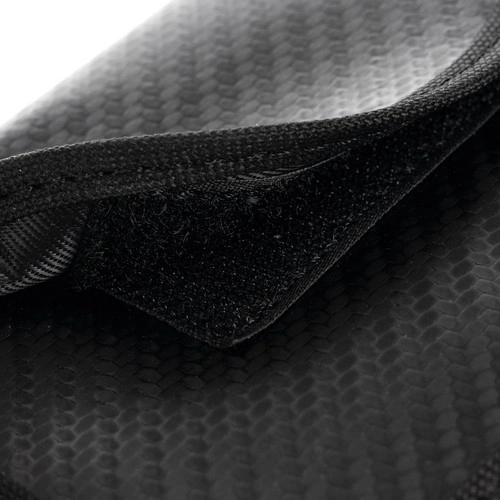 Each pouch has two separate pockets—a deeper, shielded one with a key ring for your car key, and a smaller one for payment and access cards. A durable PU surface with a carbon-look finish, soft polyester padding, and a sturdy hook-and-loop closure protect the contents from damage and accidental loss. The set includes a vertical and a horizontal variant; the horizontal version also features a rear loop for attaching to a bag or backpack.