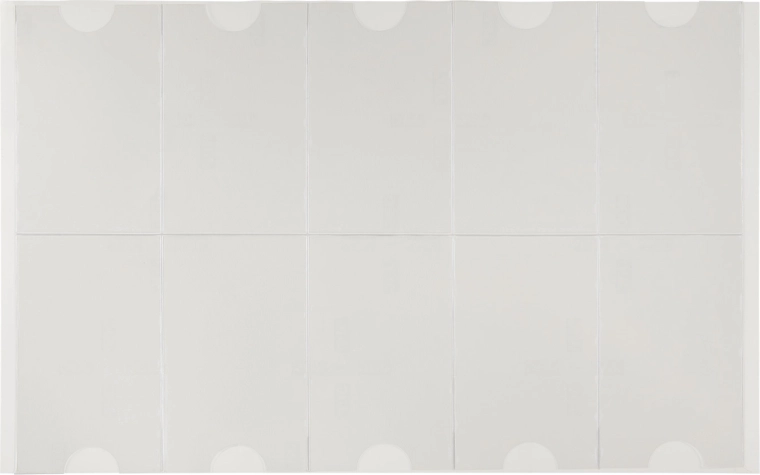 Transparent self-adhesive business card pocket with a side opening for quick insertion and replacement. The rear self-adhesive layer adheres reliably to smooth surfaces. Supplied on a sheet of 10 pcs.