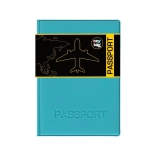 Stylish turquoise cover with embossed 'PASSPORT' text and protective strap emphasizing travel purpose.
